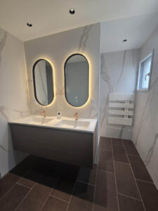 Nous prenons en charge la totalité des travaux de plomberie et d’électricité, garantissant une installation aux normes et une étanchéité parfaite.