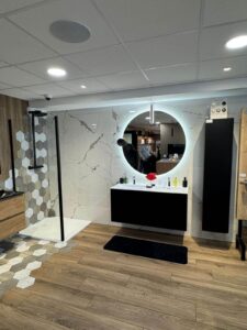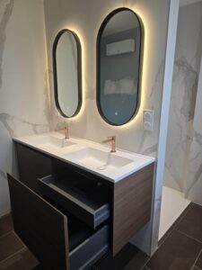 Transformez votre salle de bain avec des équipements sanitaires Grohe et du mobilier italien Baxar, alliant fonctionnalité moderne et design épuré.